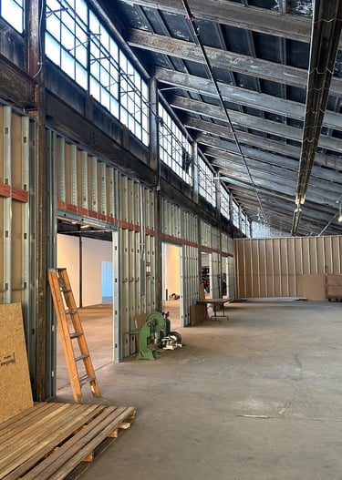 The Belden Building offers high ceilings, thick floors, drive in door and loads of natural light. Perfect for metal work, sculptors, potters and glass artists among others.